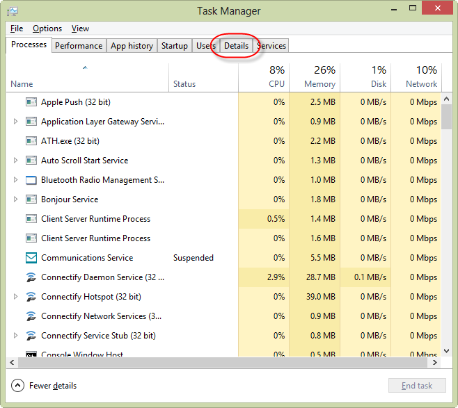 ตั้งแต่สมัย Windows 2000 ไมโครซอฟท์ใช้รูปแบบของ task manager แบบเดิมมาตลอด จนมาถึงเวอร์ชั่นปัจจุบันคือ Windows 8 ทางไมโครซอฟท์ได้เปลี่ยนรูปแบบการแสดงผลของ task manager ให้ดูเรียบง่ายขึ้น (หรือเปล่า) แต่ถ้าเราอยากเห็น task manager ในแบบเก่าก็ยังทำได้ครับ แต่ต้องเหนื่อยเพิ่มนิดนึงคือ