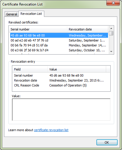 SSL certificate ที่เราใช้งานจะมี attribute ที่บอกว่า cetificate ยังใช้ได้หรือไม่ ก็คือ Certificate Revocation List (หรือ CRL)